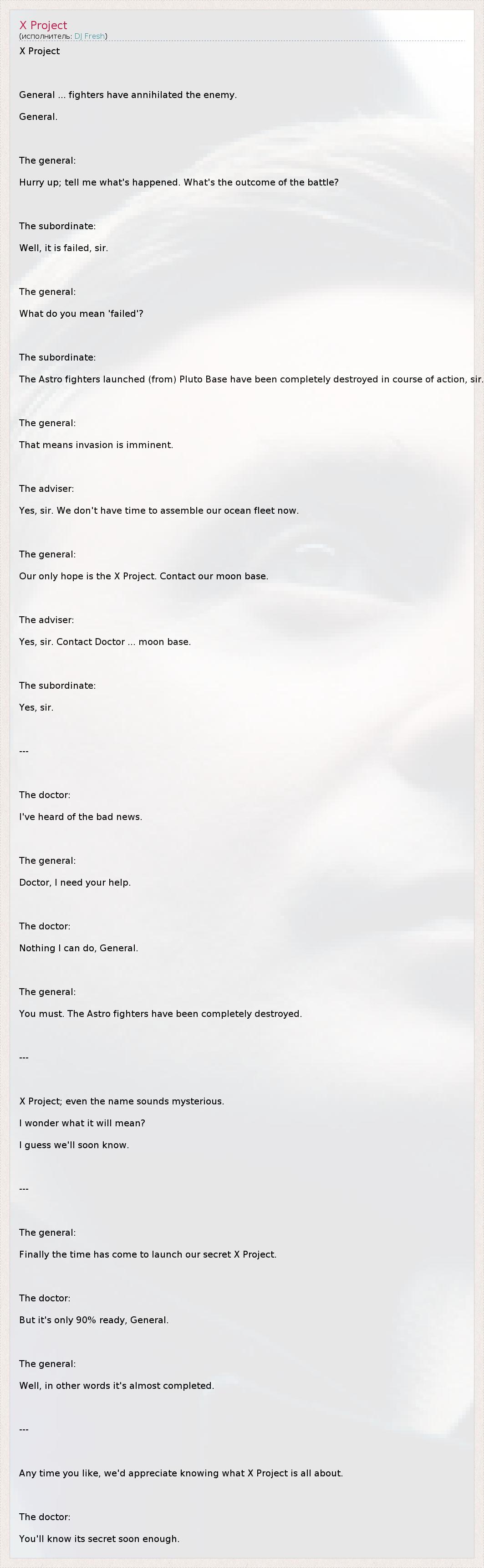 Any time you like, we'd appreciate knowing what X Project is all about.
