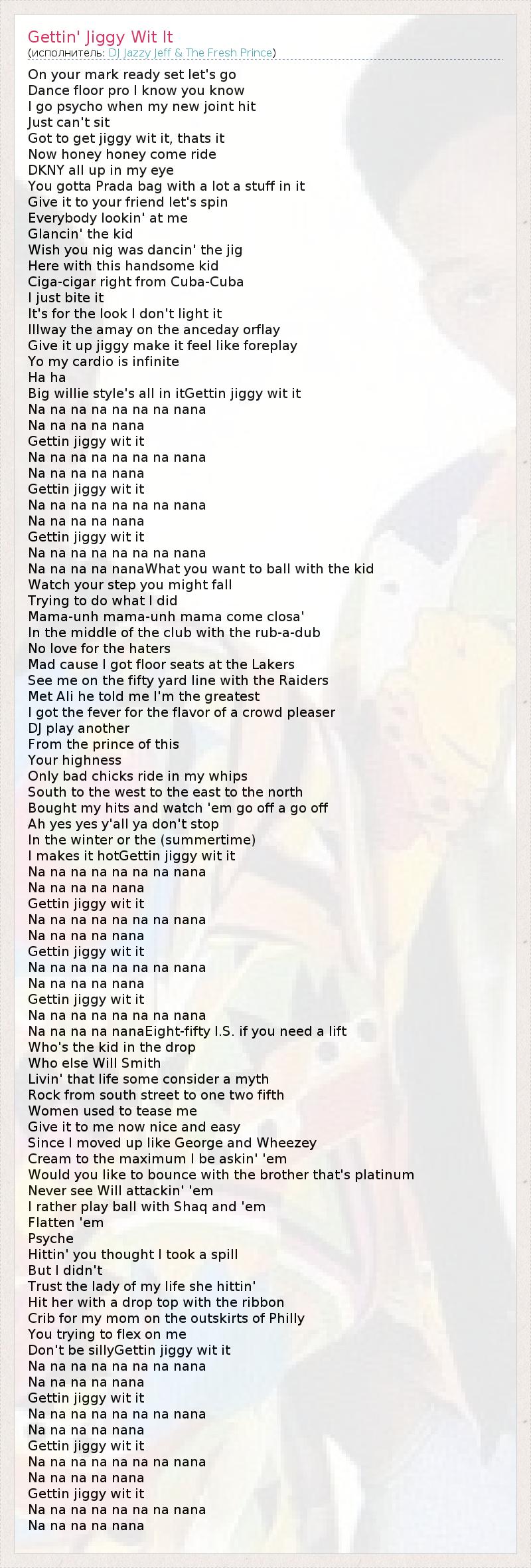 А как ты думаешь, о чем песня "Gettin' Jiggy Wit It" ?
