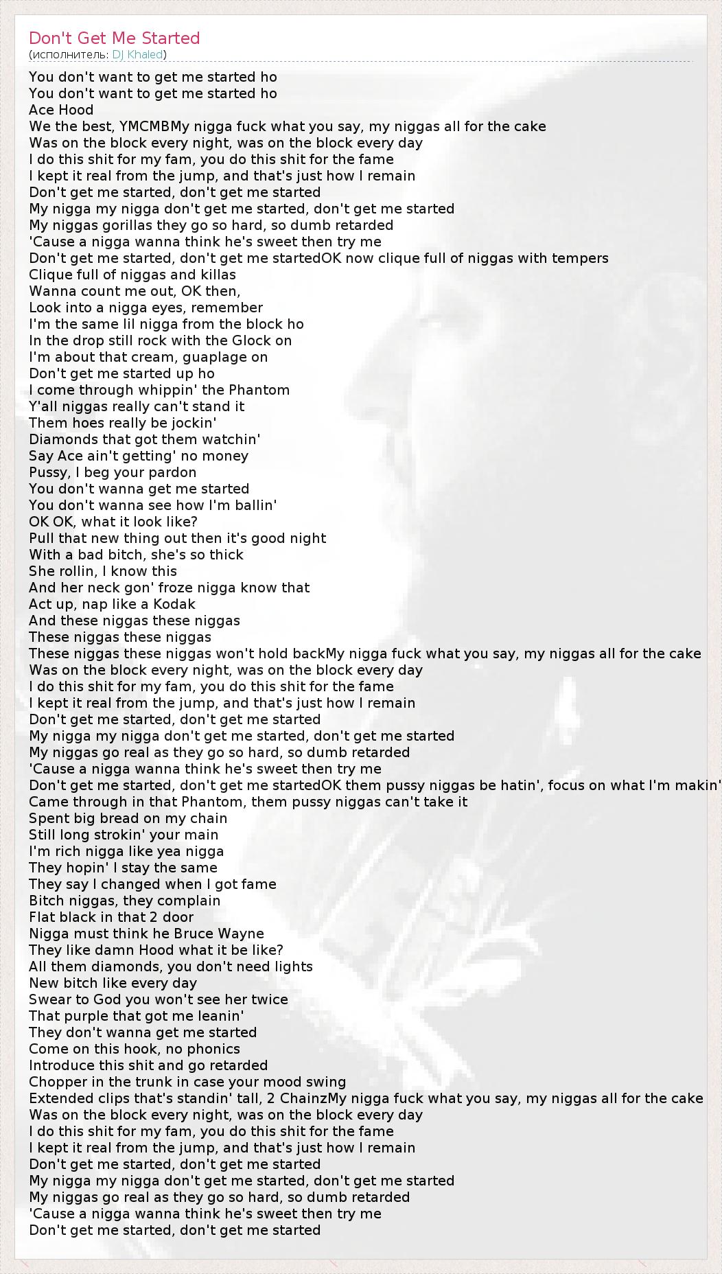 Don't get me started, don't get me startedOK them pussy niggas be hatin', focus on what I'm makin'