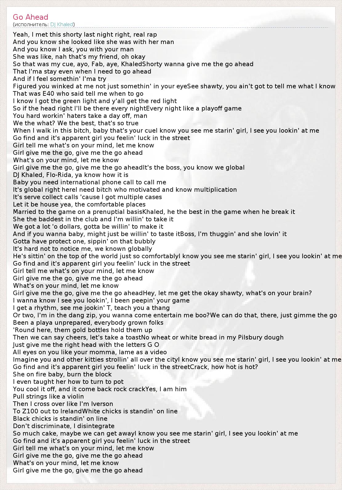 А как ты думаешь, о чем песня "Go Ahead" ?