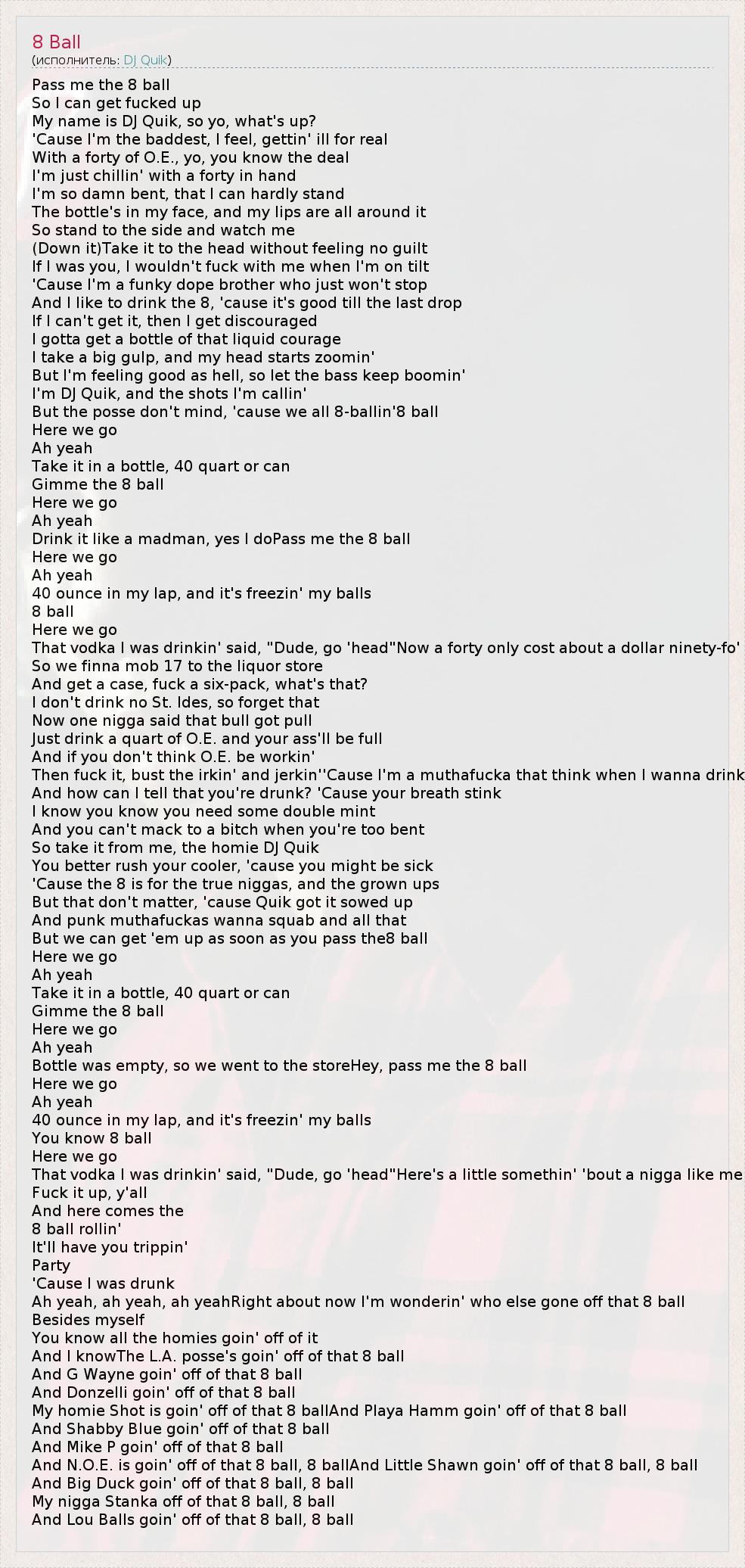 My homie Shot is goin' off of that 8 ballAnd Playa Hamm goin' off of that 8 ball