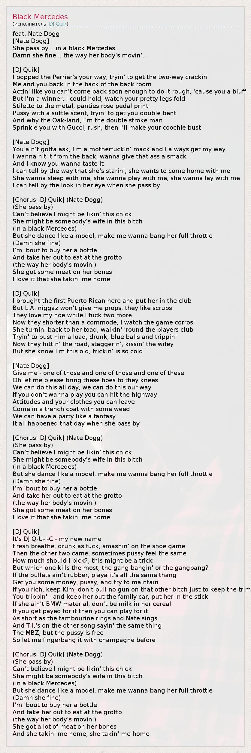 А как ты думаешь, о чем песня "Black Mercedes" ?