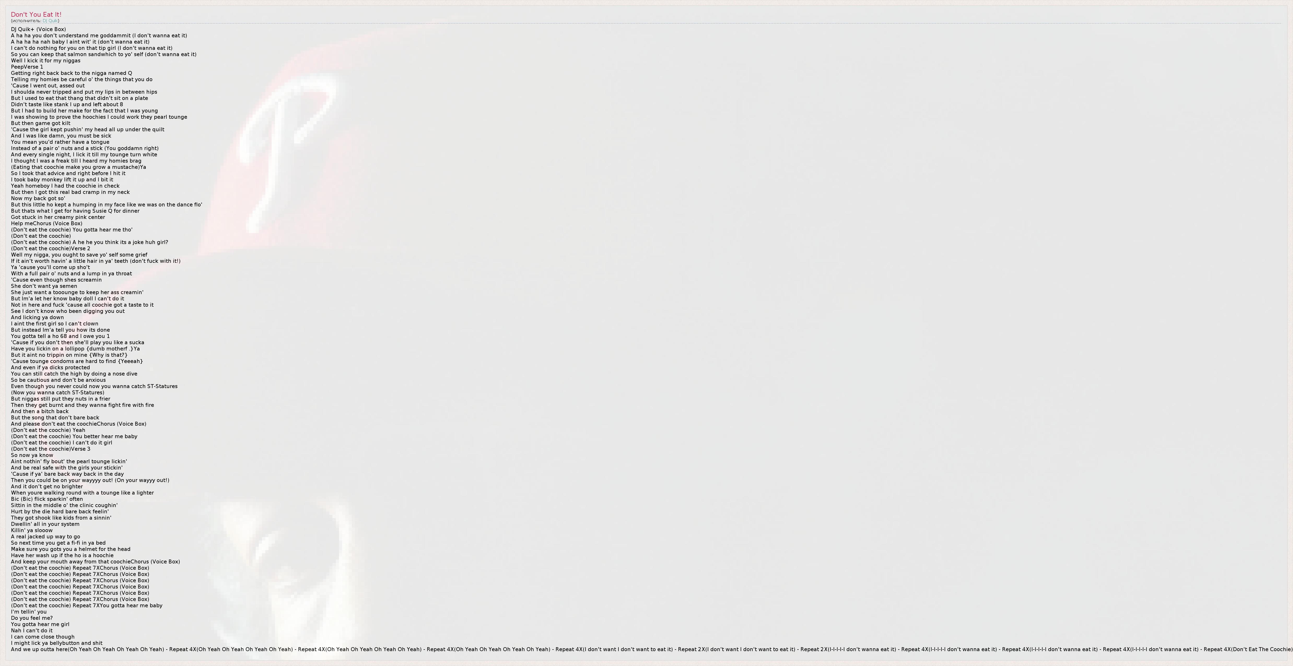 (Don't eat the coochie) Repeat 7XChorus (Voice Box)