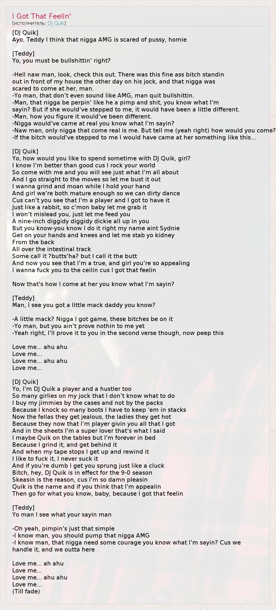 А как ты думаешь, о чем песня "I Got That Feelin'" ?