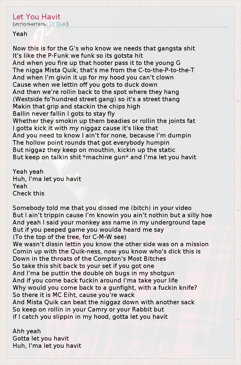 if I catch you slippin in my hood, gotta let you havit
