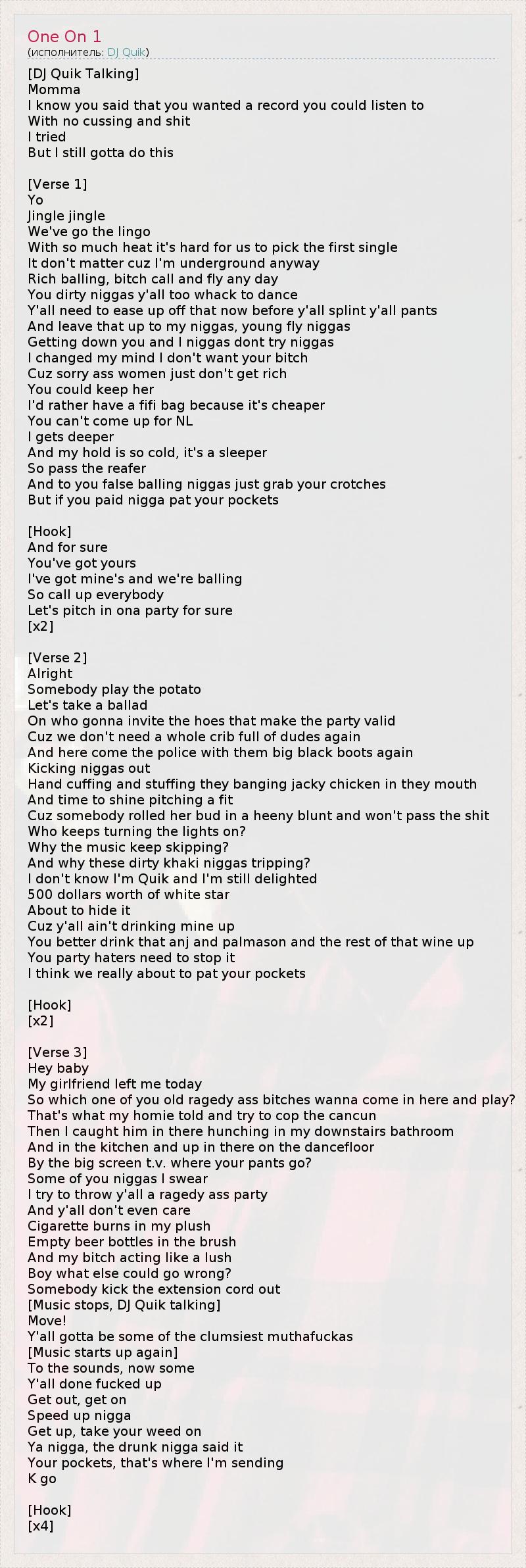 А как ты думаешь, о чем песня "One On 1" ?