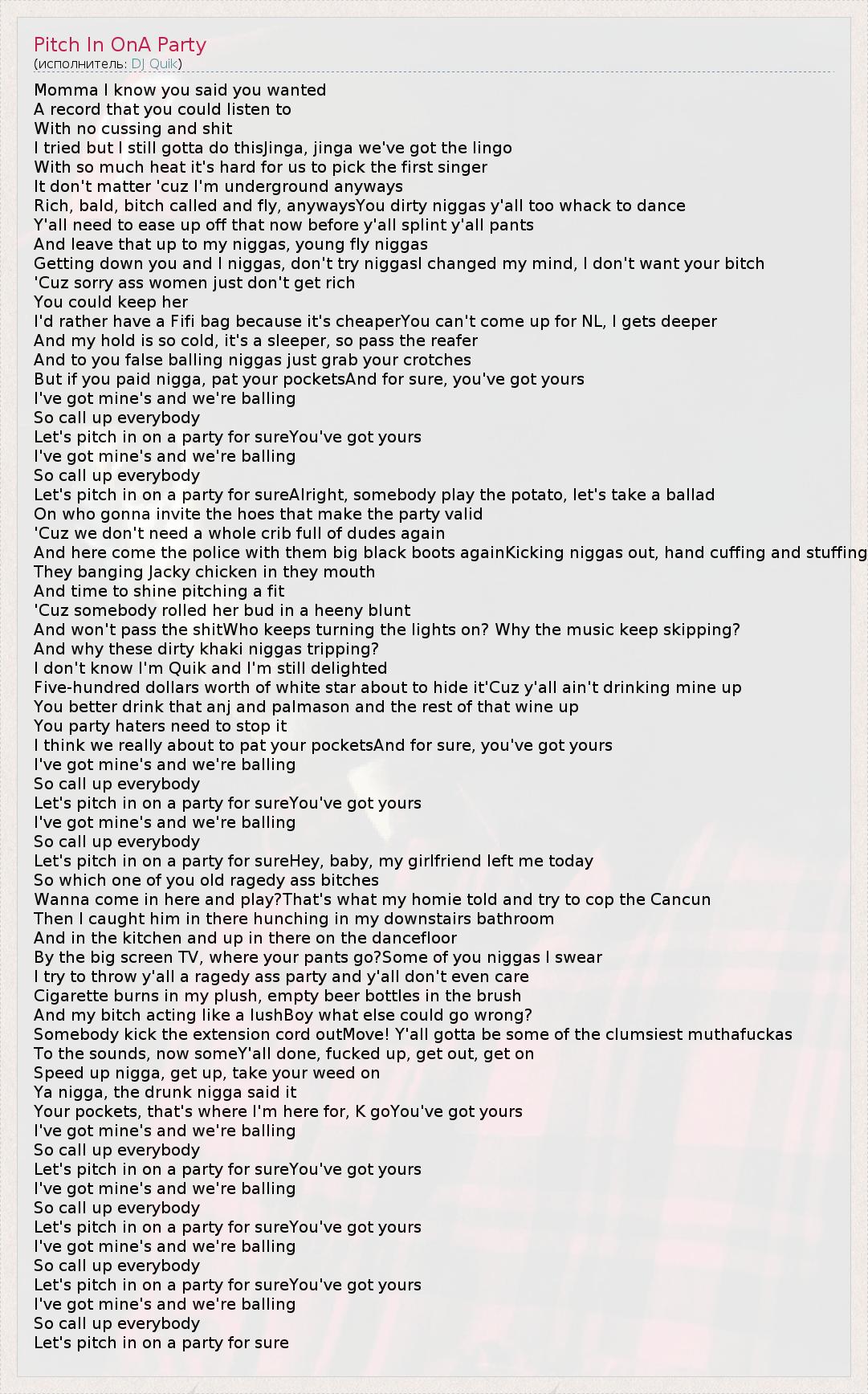 А как ты думаешь, о чем песня "Pitch In OnA Party" ?