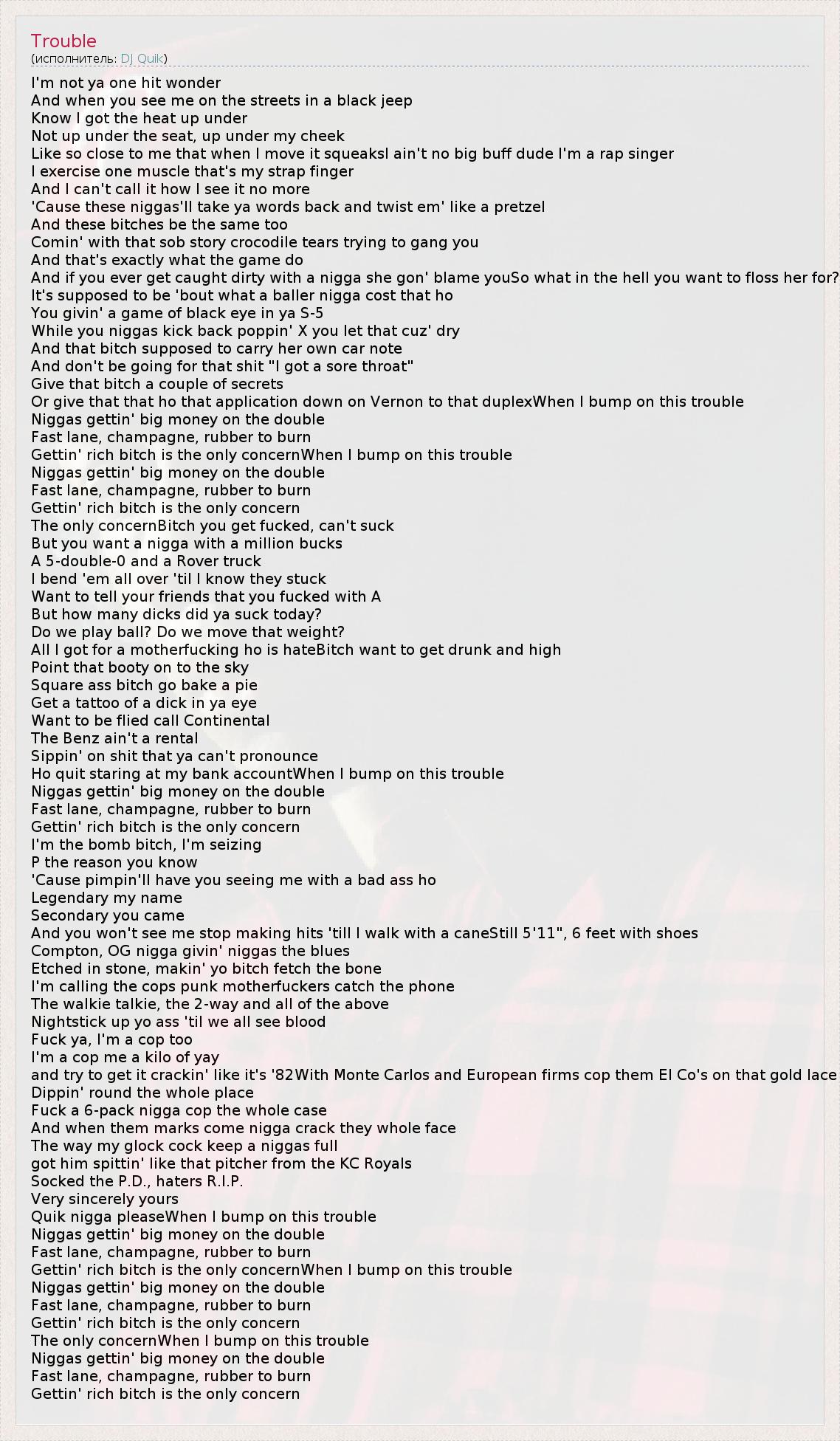 Gettin' rich bitch is the only concernWhen I bump on this trouble