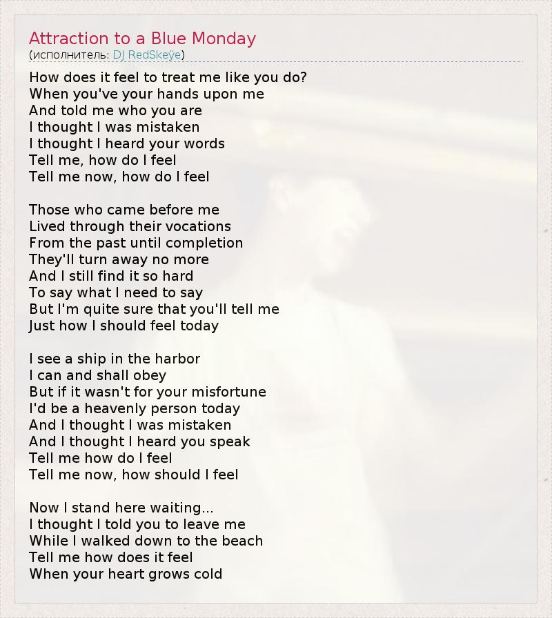 А как ты думаешь, о чем песня "Attraction to a Blue Monday" ?