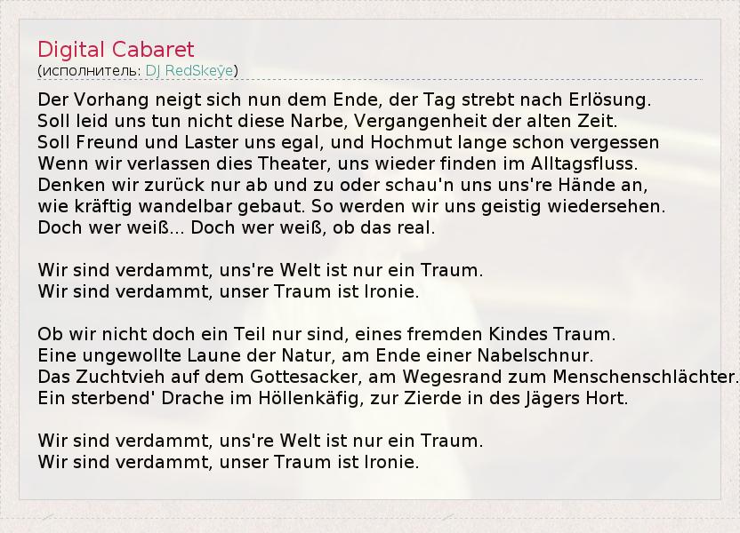 А как ты думаешь, о чем песня "Digital Cabaret" ?