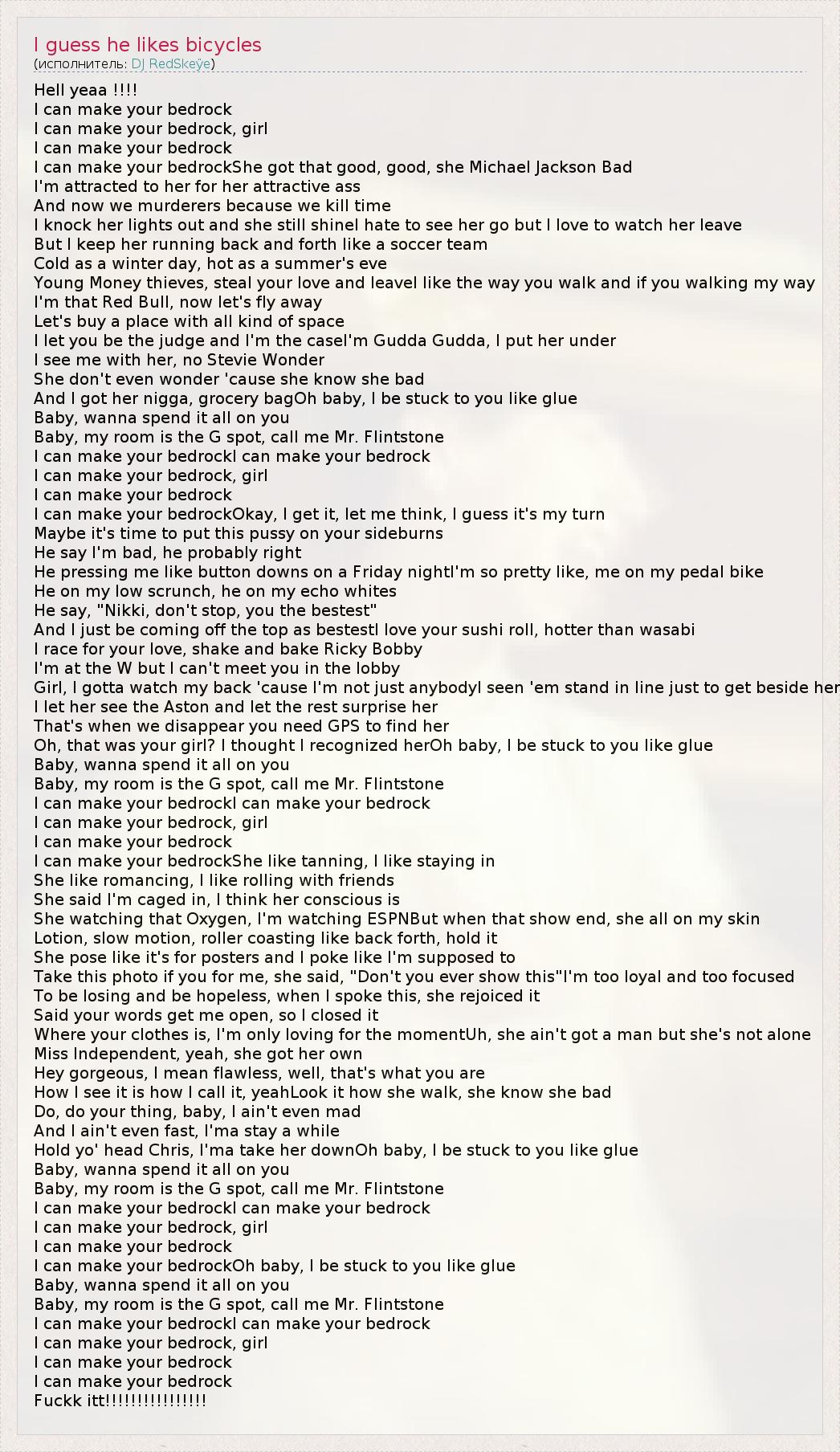 ГлавнаяИсполнителиDJ RedSkeÿeI guess he likes bicycles