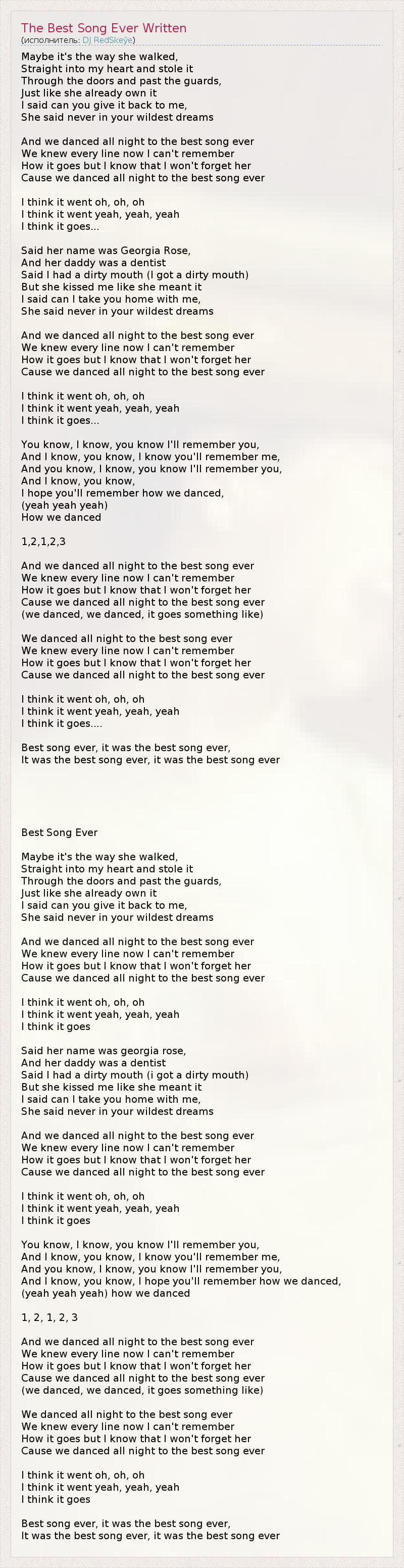 А как ты думаешь, о чем песня "The Best Song Ever Written" ?
