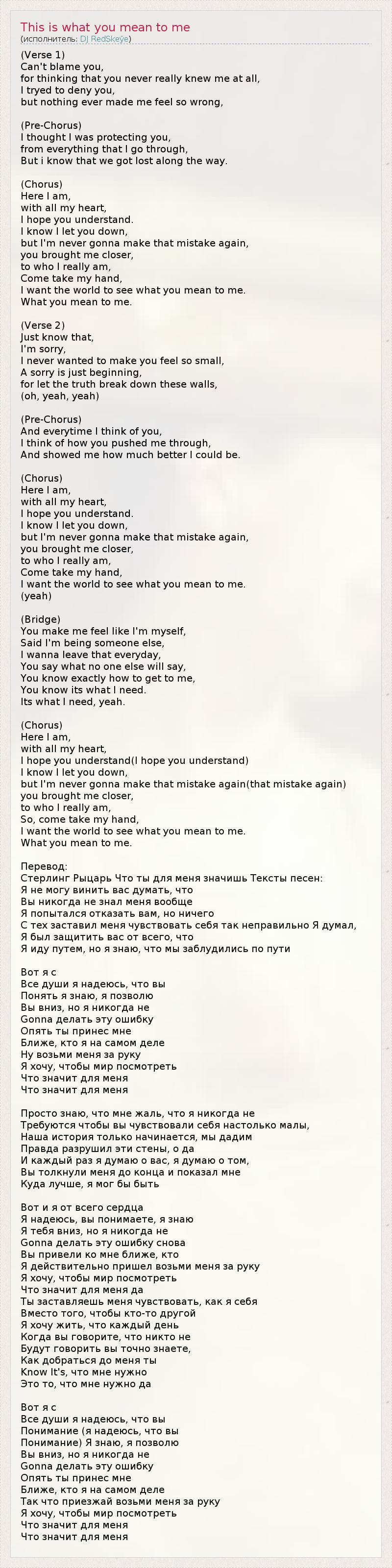 Стерлинг Рыцарь Что ты для меня значишь Тексты песен: