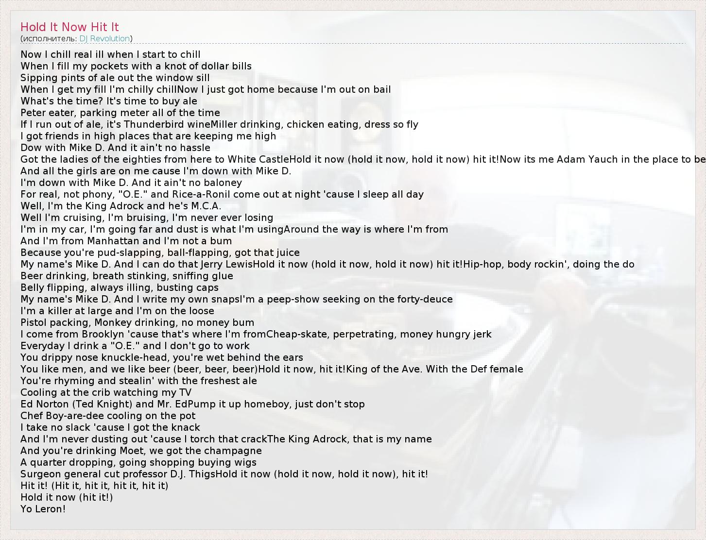 А как ты думаешь, о чем песня "Hold It Now Hit It" ?
