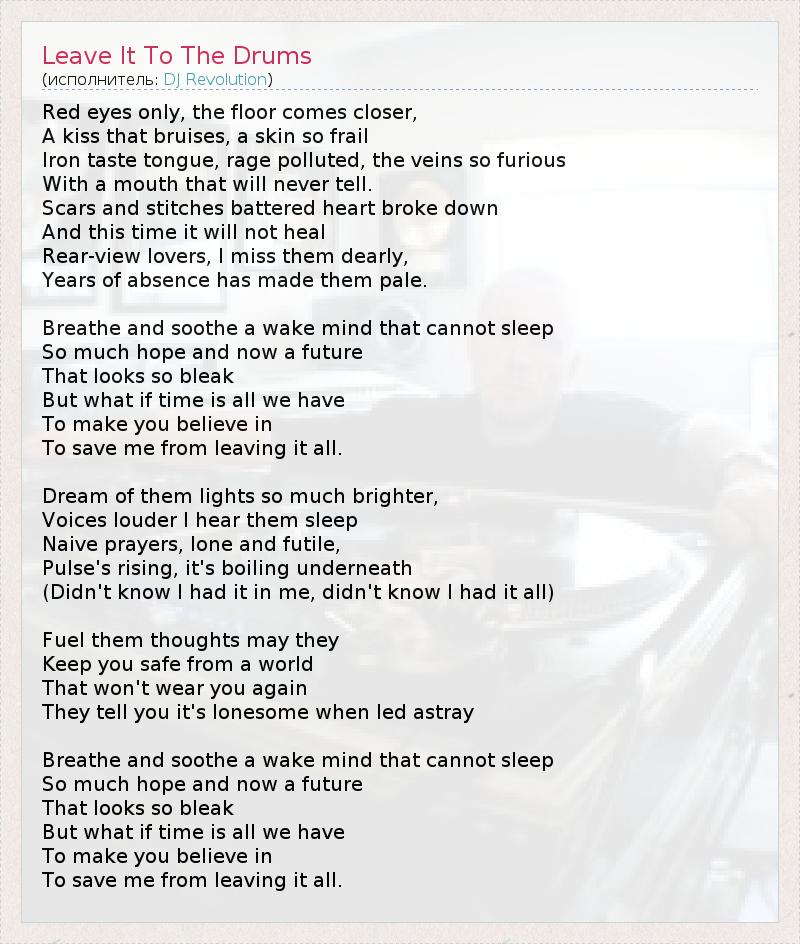 А как ты думаешь, о чем песня "Leave It To The Drums" ?