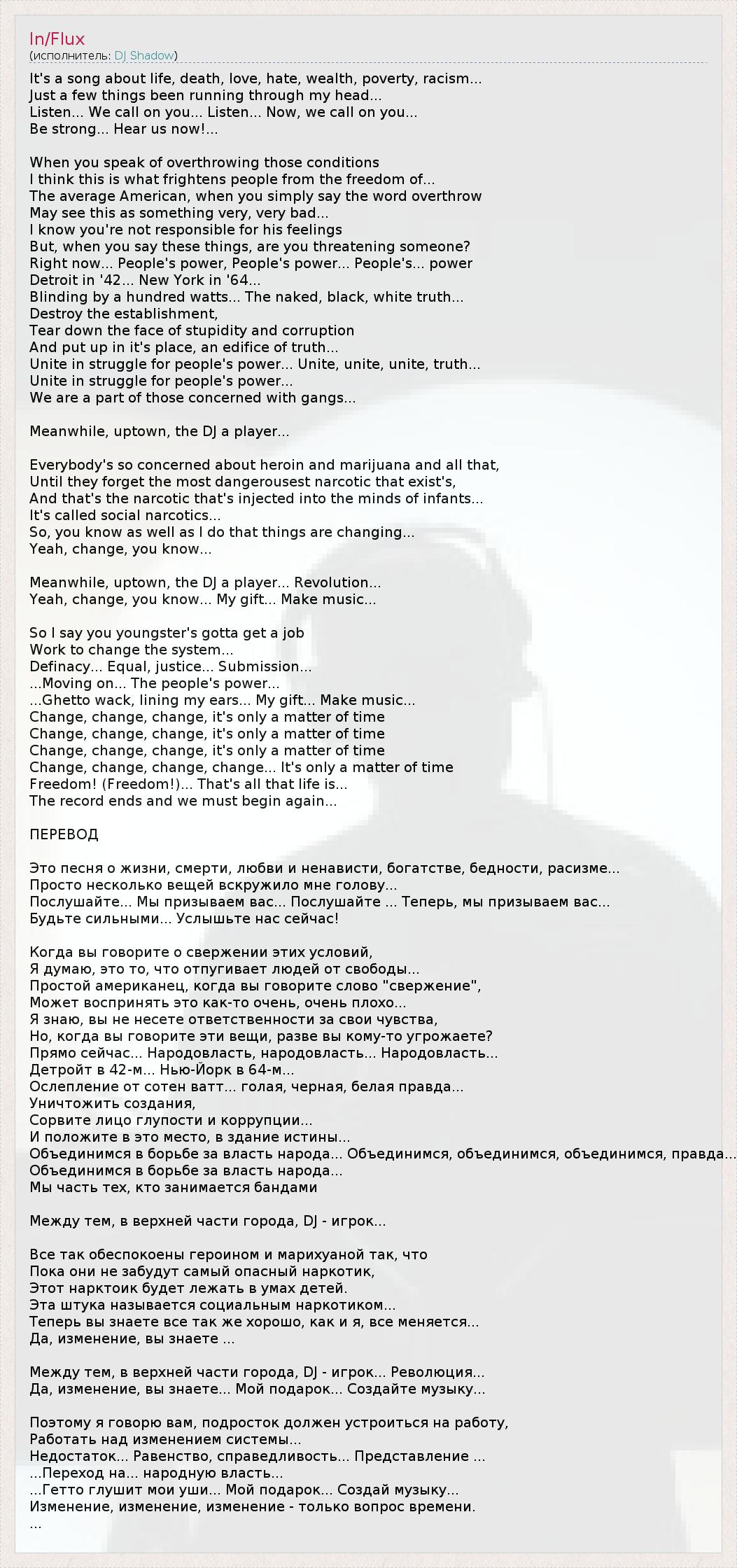 Это песня о жизни, смерти, любви и ненависти, богатстве, бедности, расизме...