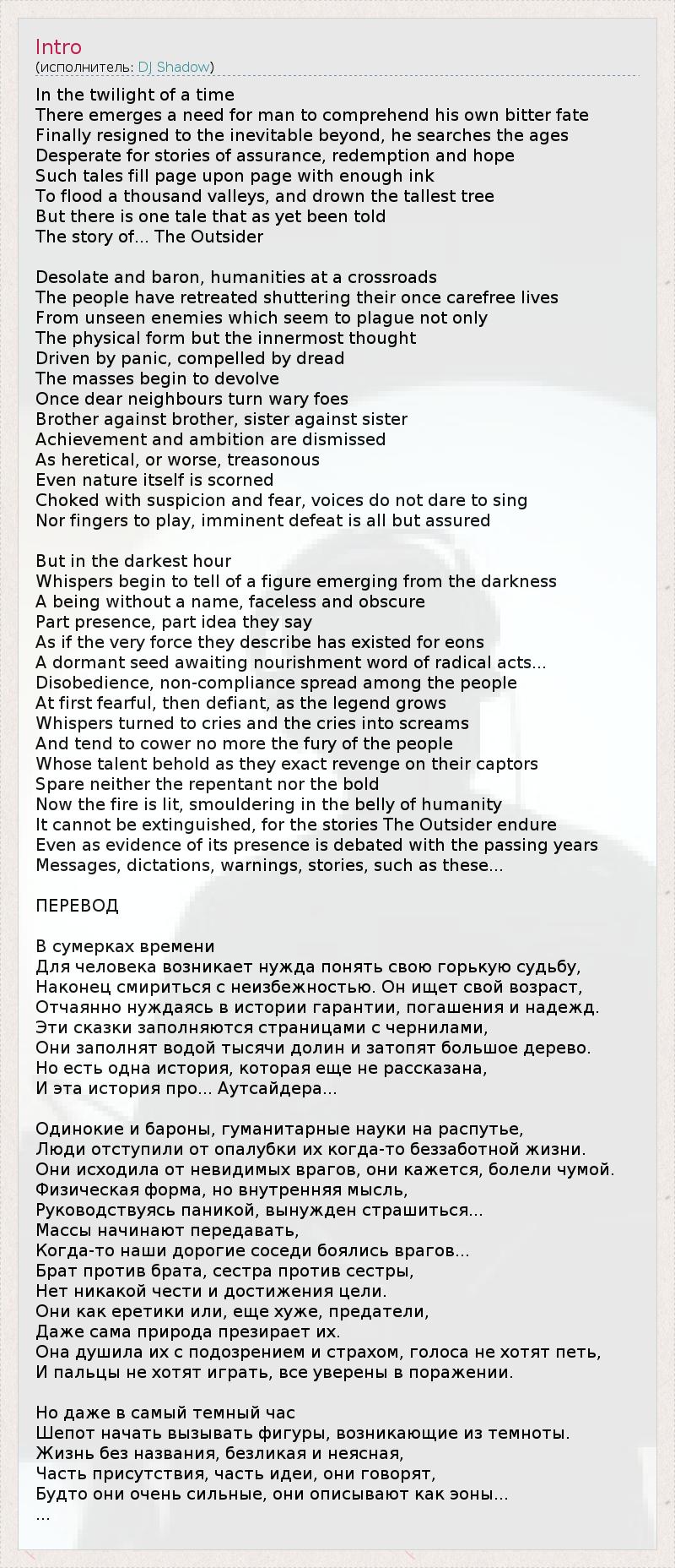 Это интересно:Калифорниец Джош Дэвис (Josh Davis) (родился 29 июня, 1972 года в Калифорния, США), больше известный миру как DJ Shadow, в определённом смысле миссионер hip-hop. Не того, который сегодня в моде - с агрессивно растопыренными пальцами в перстнях, с пистолетом наготове, с гомофобией в каждом слове и пулемётными очередями «факов». DJ Shadow - музыкант другого склада, он симпатизирует... продолжение