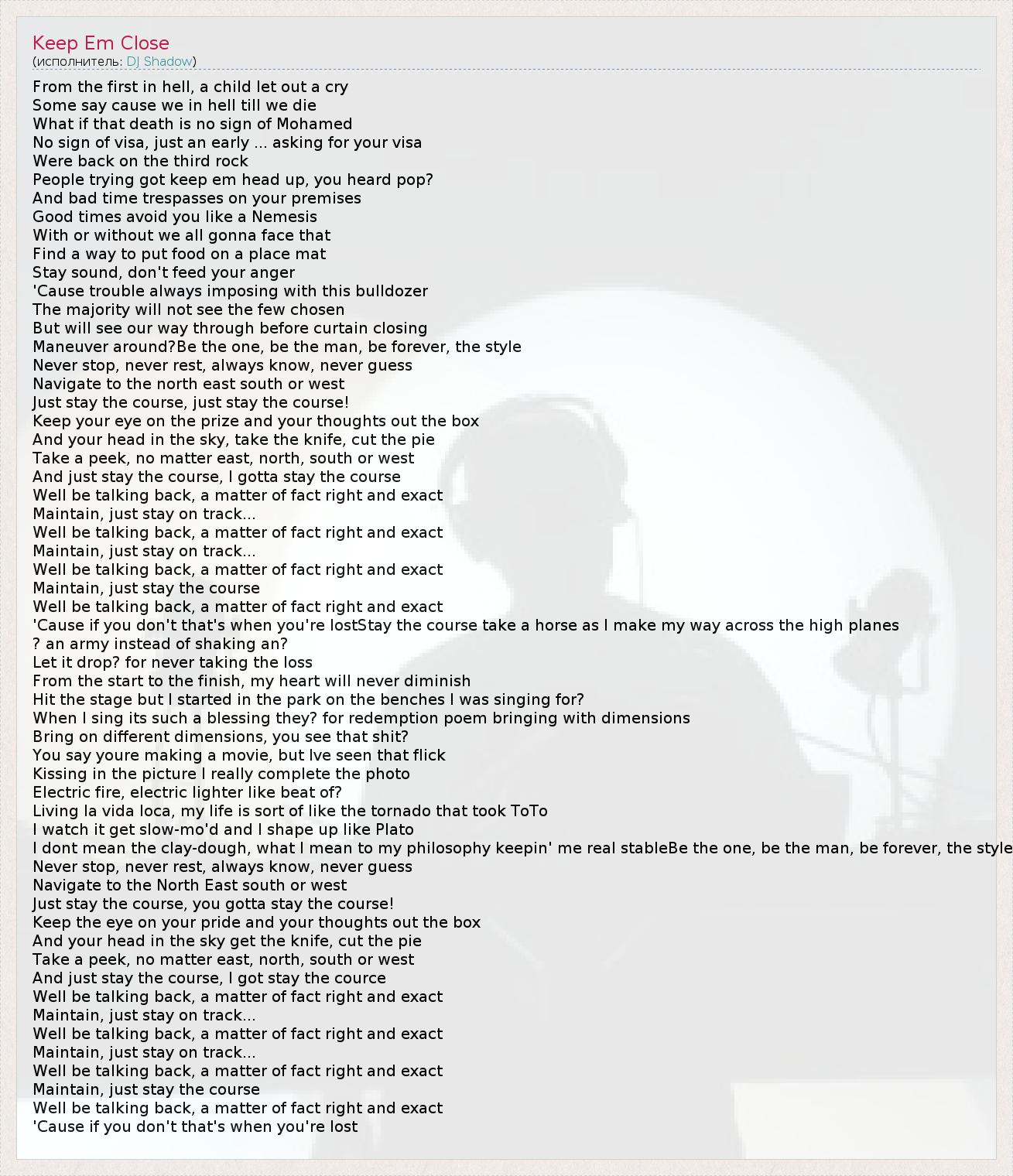 А как ты думаешь, о чем песня "Keep Em Close" ?