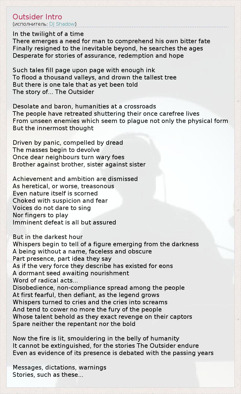 А как ты думаешь, о чем песня "Outsider Intro" ?