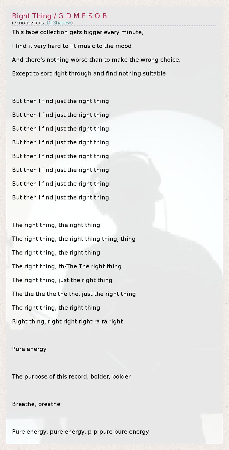 А как ты думаешь, о чем песня "Right Thing / G D M F S O B" ?