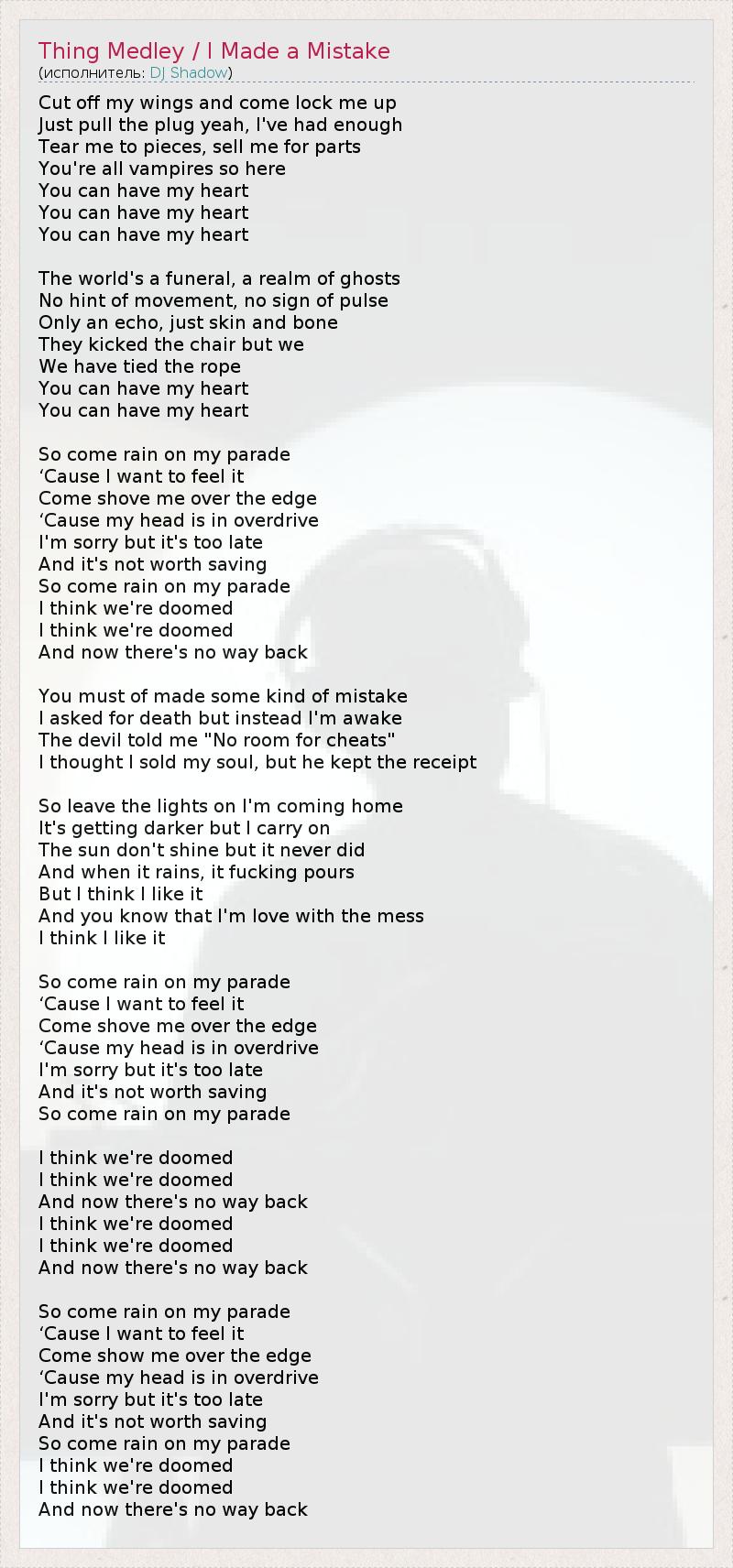 А как ты думаешь, о чем песня "Thing Medley / I Made a Mistake" ?