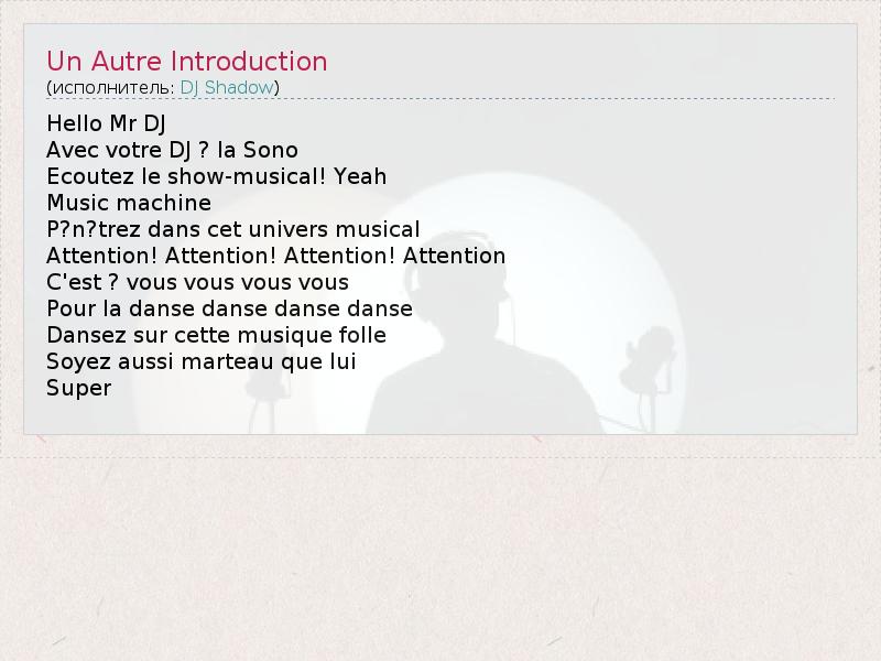 А как ты думаешь, о чем песня "Un Autre Introduction" ?