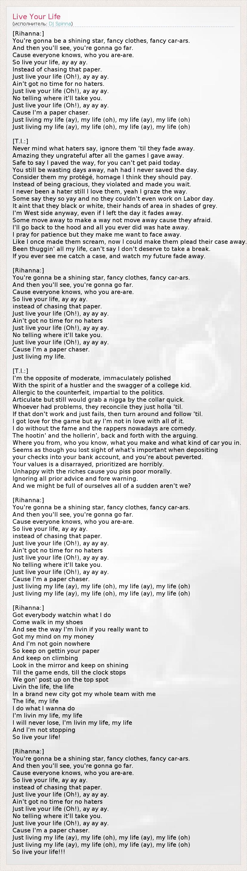 А как ты думаешь, о чем песня "Live Your Life" ?
