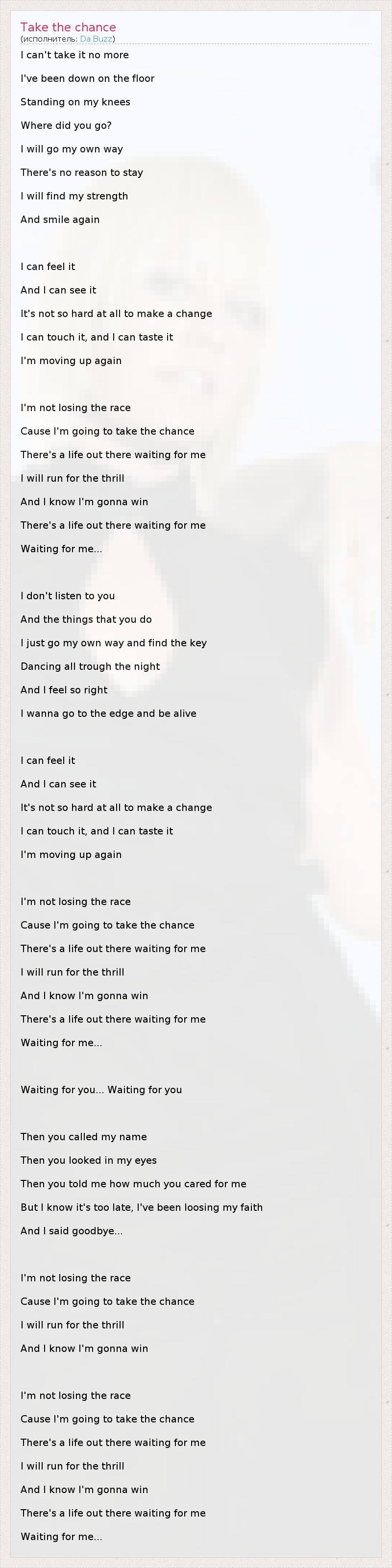 Это интересно:Шесть лет назад, cоединив три музыкальные судьбы воедино, Анника Торнкист, Пер Лиден и Пьер Шимд создали новую группу.Da Buzz легко узнать - это мелодичная, свежая, лёгкая и просто приятная музыка в стиле поп."Da Buzz - это не группа, которая живет лишь поп-имиджем",- настаивает Пер."Наша группа - это музыка, и мы хотим, чтобы она звучала по-своему"."Я пела всю свою жизнь,... продолжение