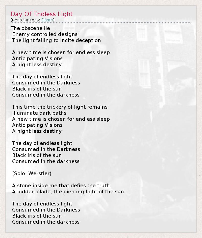 А как ты думаешь, о чем песня "Day Of Endless Light" ?