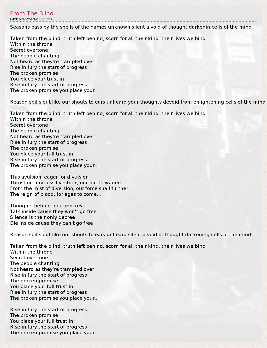 А как ты думаешь, о чем песня "From The Blind" ?