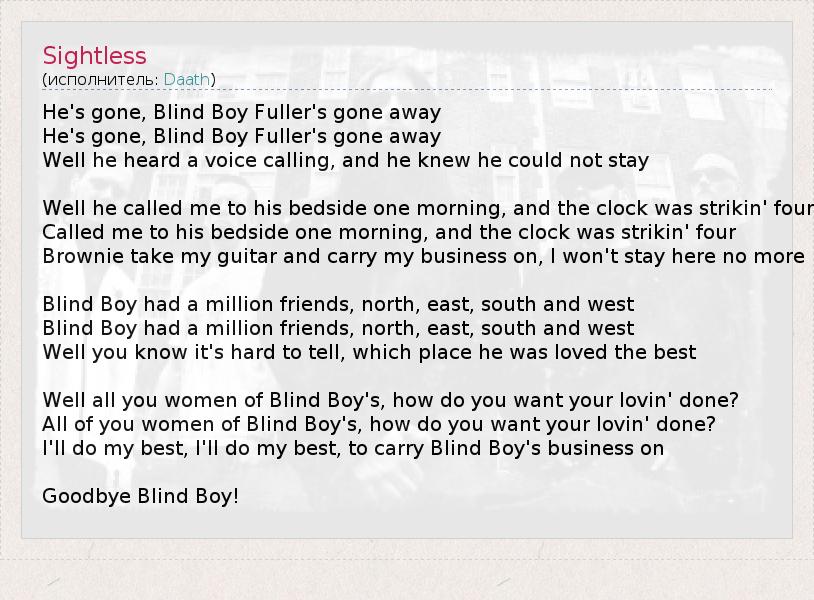 I'll do my best, I'll do my best, to carry Blind Boy's business on