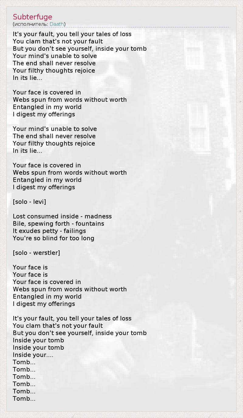 А как ты думаешь, о чем песня "Subterfuge" ?