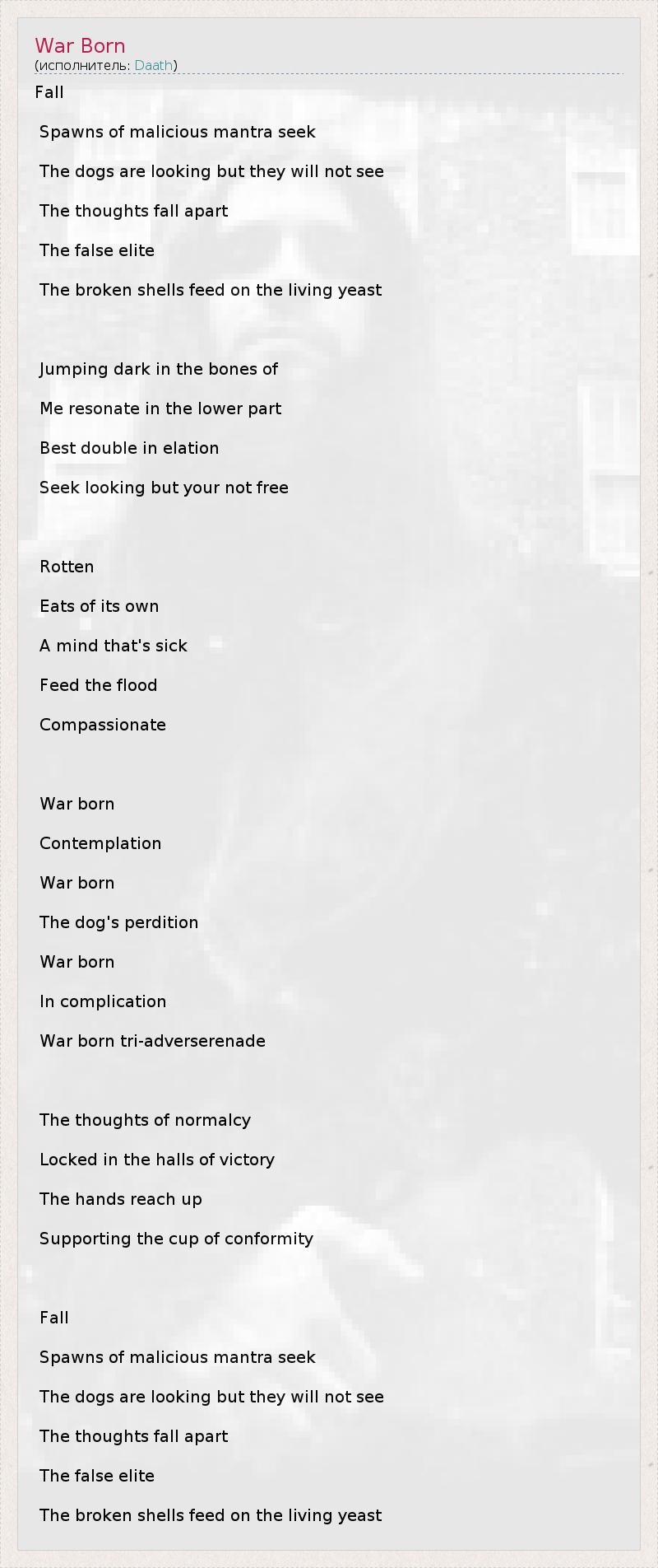 А как ты думаешь, о чем песня "War Born" ?