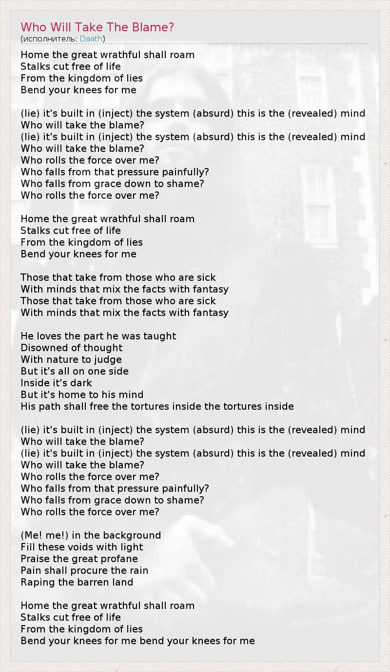 А как ты думаешь, о чем песня "Who Will Take The Blame?" ?