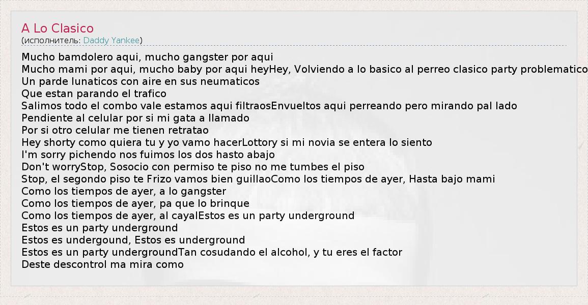 А как ты думаешь, о чем песня "A Lo Clasico" ?
