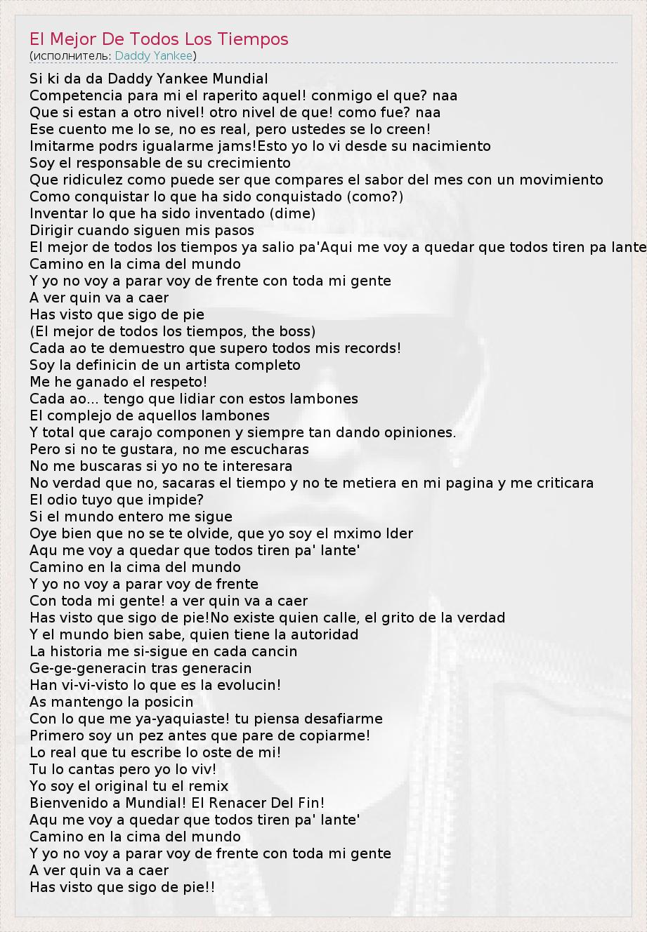А как ты думаешь, о чем песня "El Mejor De Todos Los Tiempos" ?