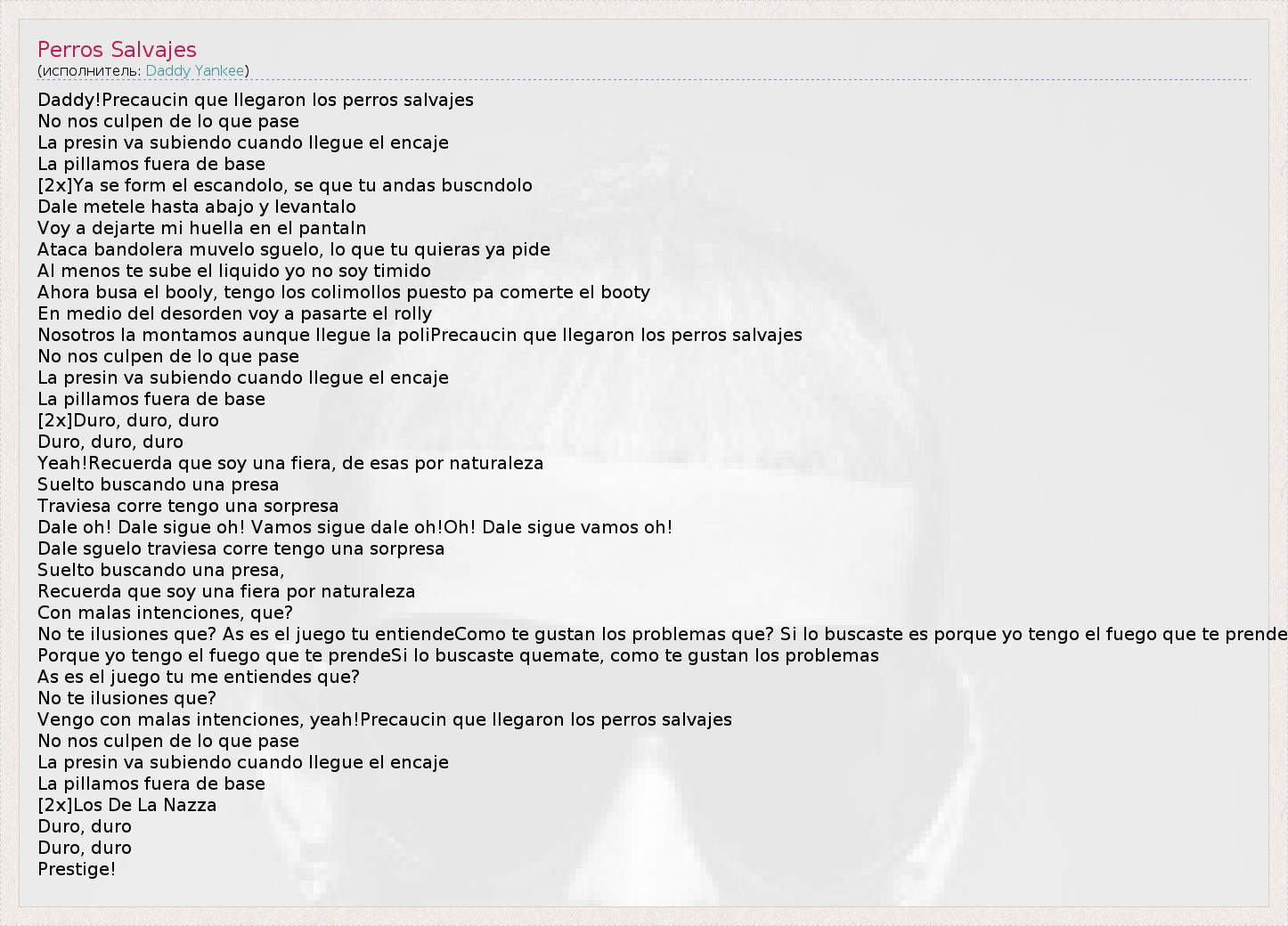 А как ты думаешь, о чем песня "Perros Salvajes" ?