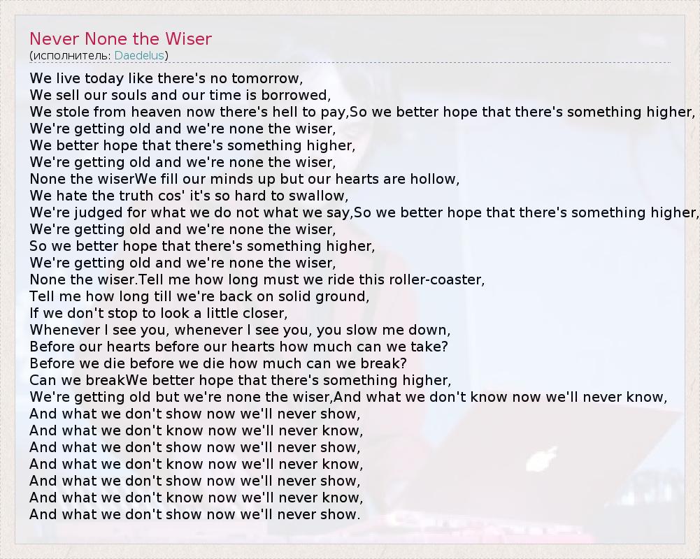 А как ты думаешь, о чем песня "Never None the Wiser" ?