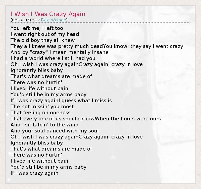 А как ты думаешь, о чем песня "I Wish I Was Crazy Again" ?