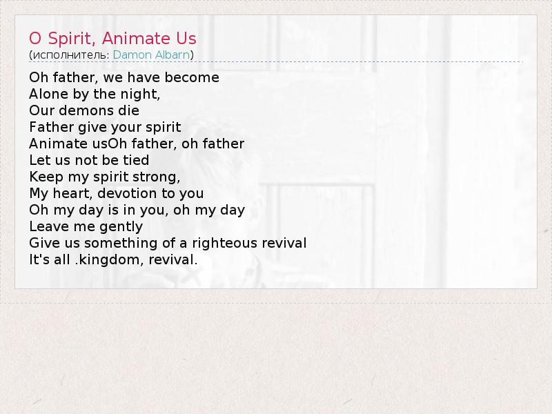 А как ты думаешь, о чем песня "O Spirit, Animate Us" ?
