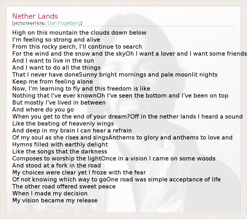 А как ты думаешь, о чем песня "Nether Lands" ?
