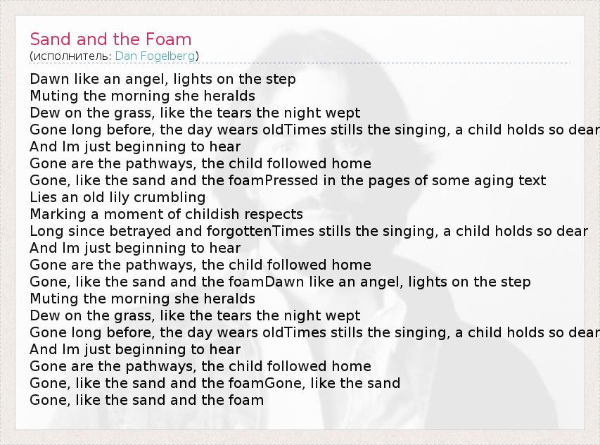 А как ты думаешь, о чем песня "Sand and the Foam" ?