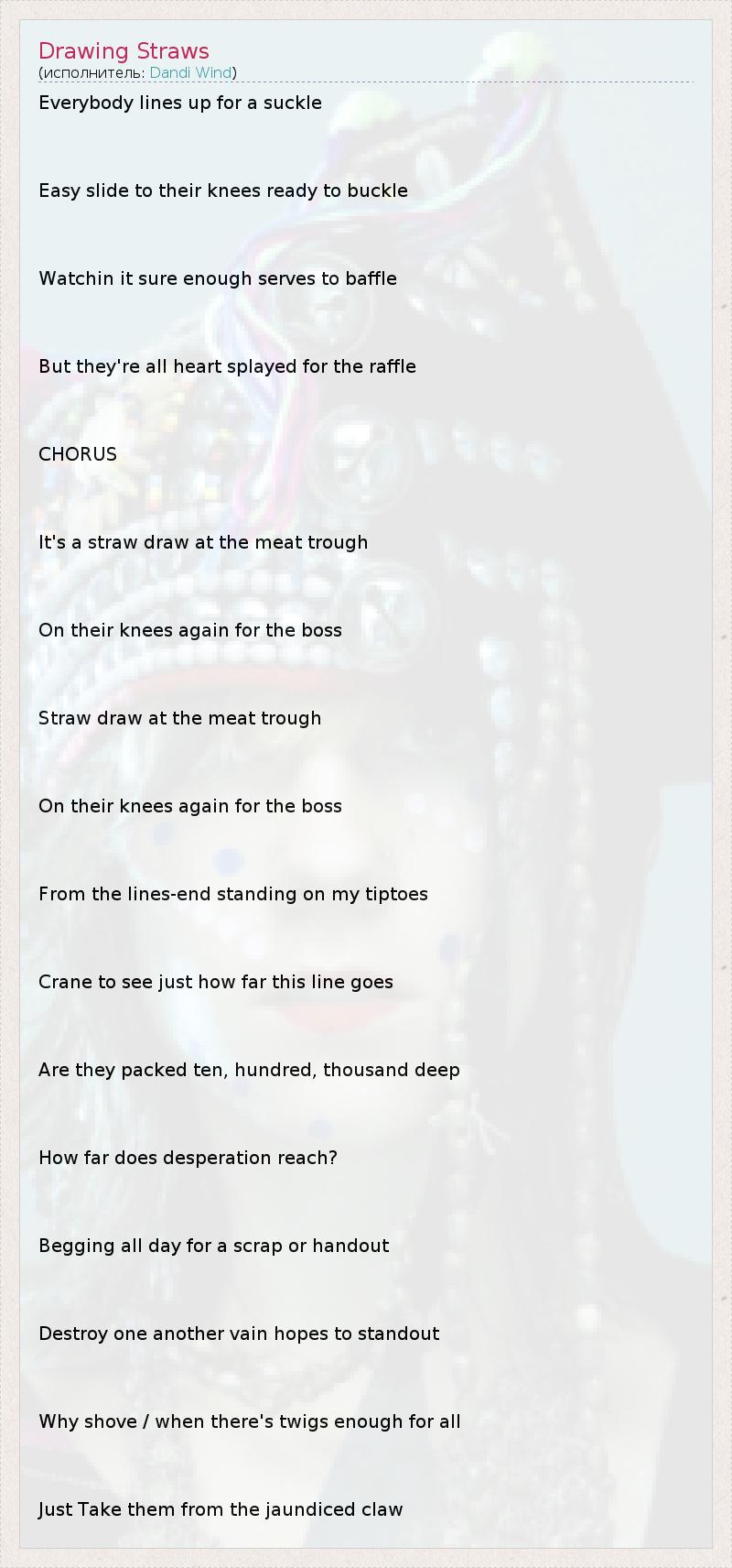 А как ты думаешь, о чем песня "Drawing Straws" ?
