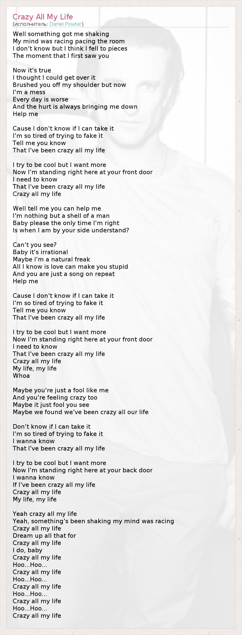 А как ты думаешь, о чем песня "Crazy All My Life" ?