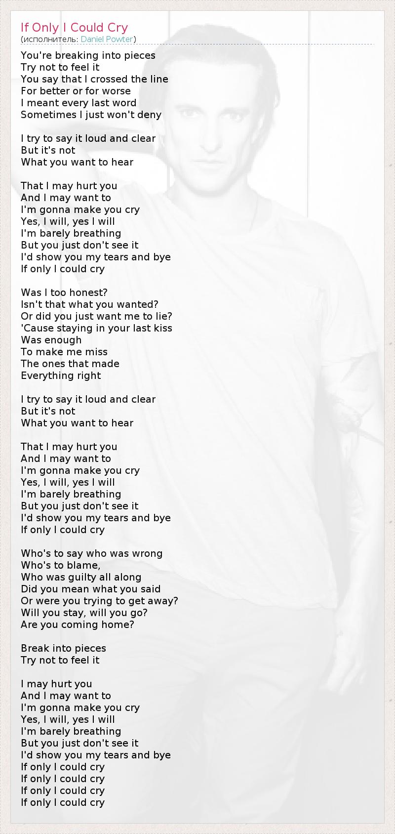А как ты думаешь, о чем песня "If Only I Could Cry" ?
