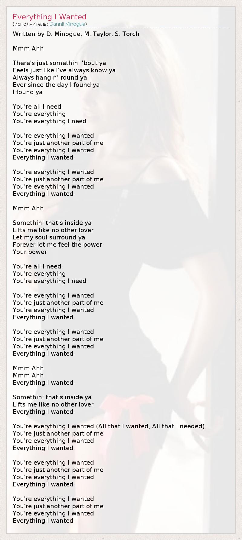 You're everything I wanted (All that I wanted, All that I needed)