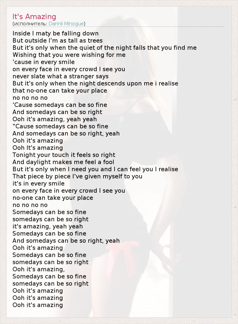А как ты думаешь, о чем песня "It's Amazing" ?