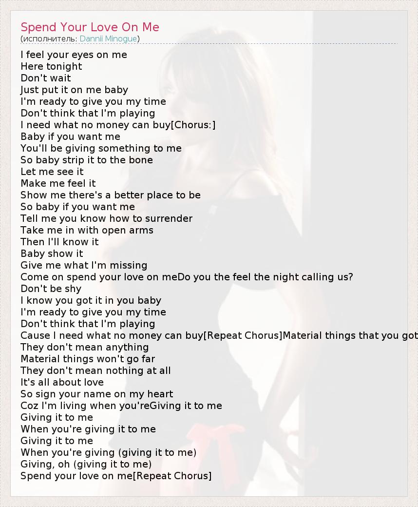 А как ты думаешь, о чем песня "Spend Your Love On Me" ?