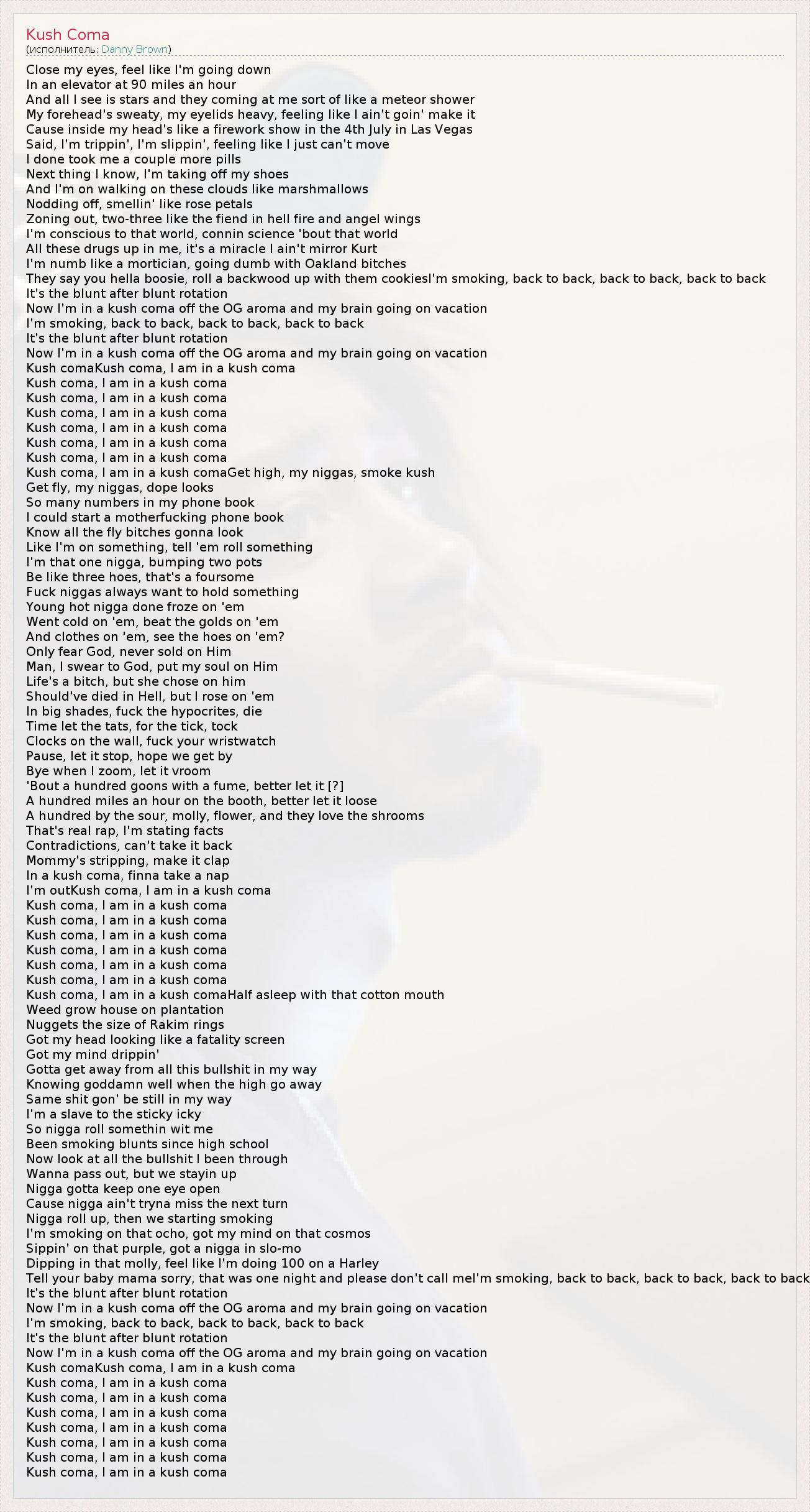 А как ты думаешь, о чем песня "Kush Coma" ?