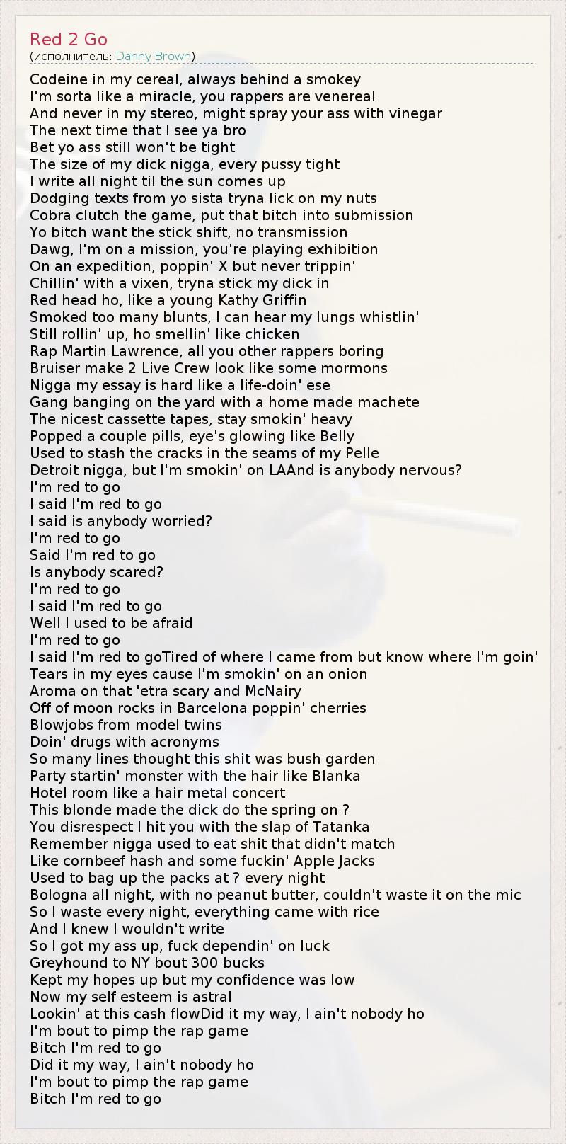 А как ты думаешь, о чем песня "Red 2 Go" ?